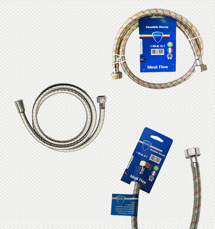 Decorall Ideal Flow დრეკადი მილები დამზადებულია უჟანგავი ფოლადისგან, რომელიც აკმაყოფილებს ევროპული ხარისხის სტანდარტებს. ხელმისაწვდომია სხვადასხვა ზომებში: